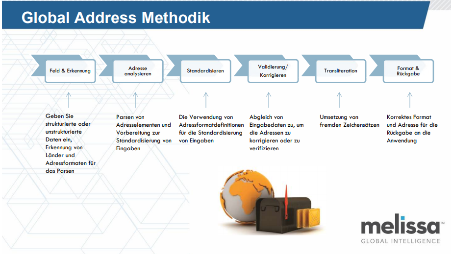 Address validation and verification has been an unloved child for many companies for years. Melissa Data offers different and flexible solutions from S-XL, which analyze the data according to different criteria. One gets a pragmatic output of previously defined information.