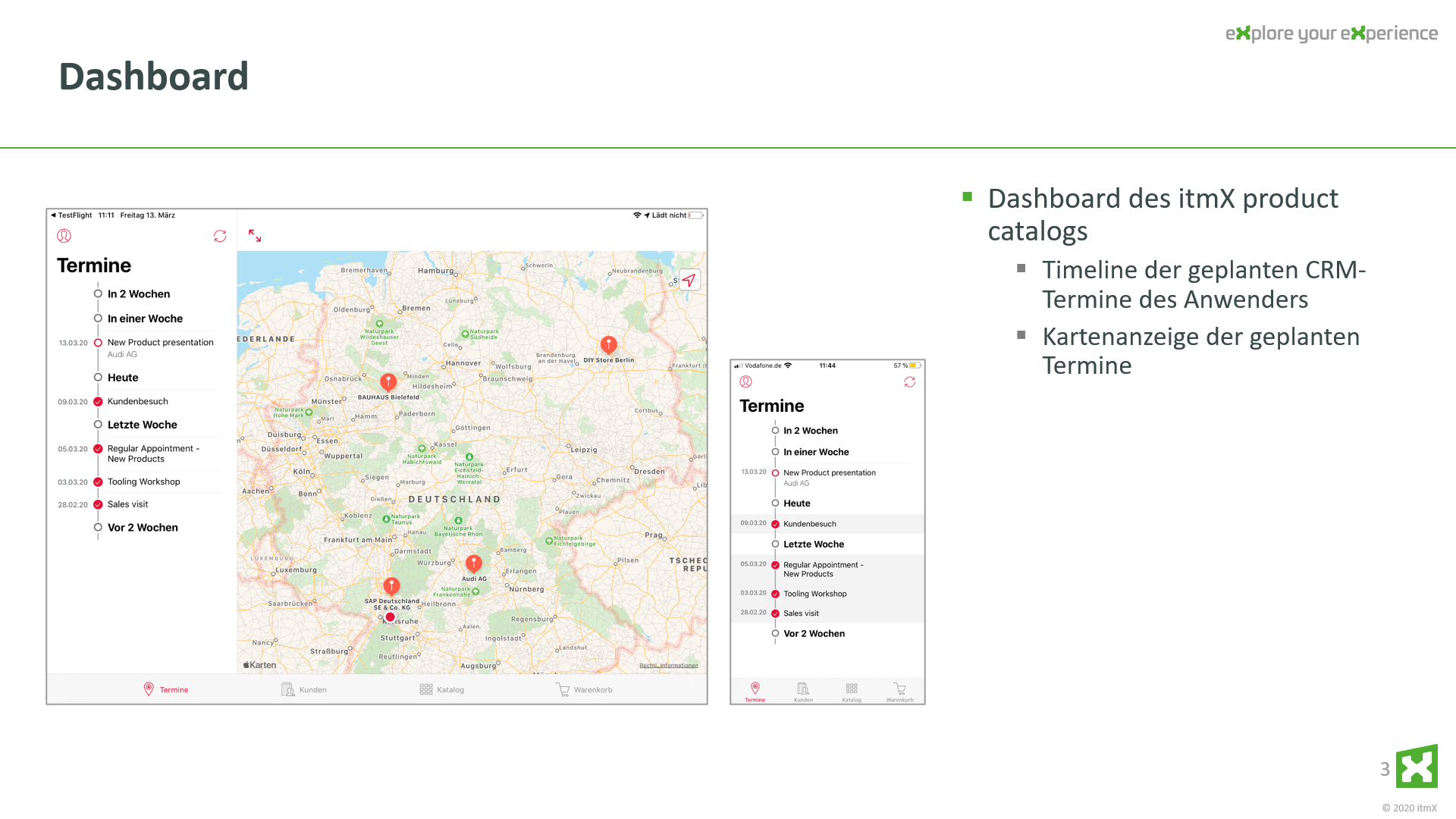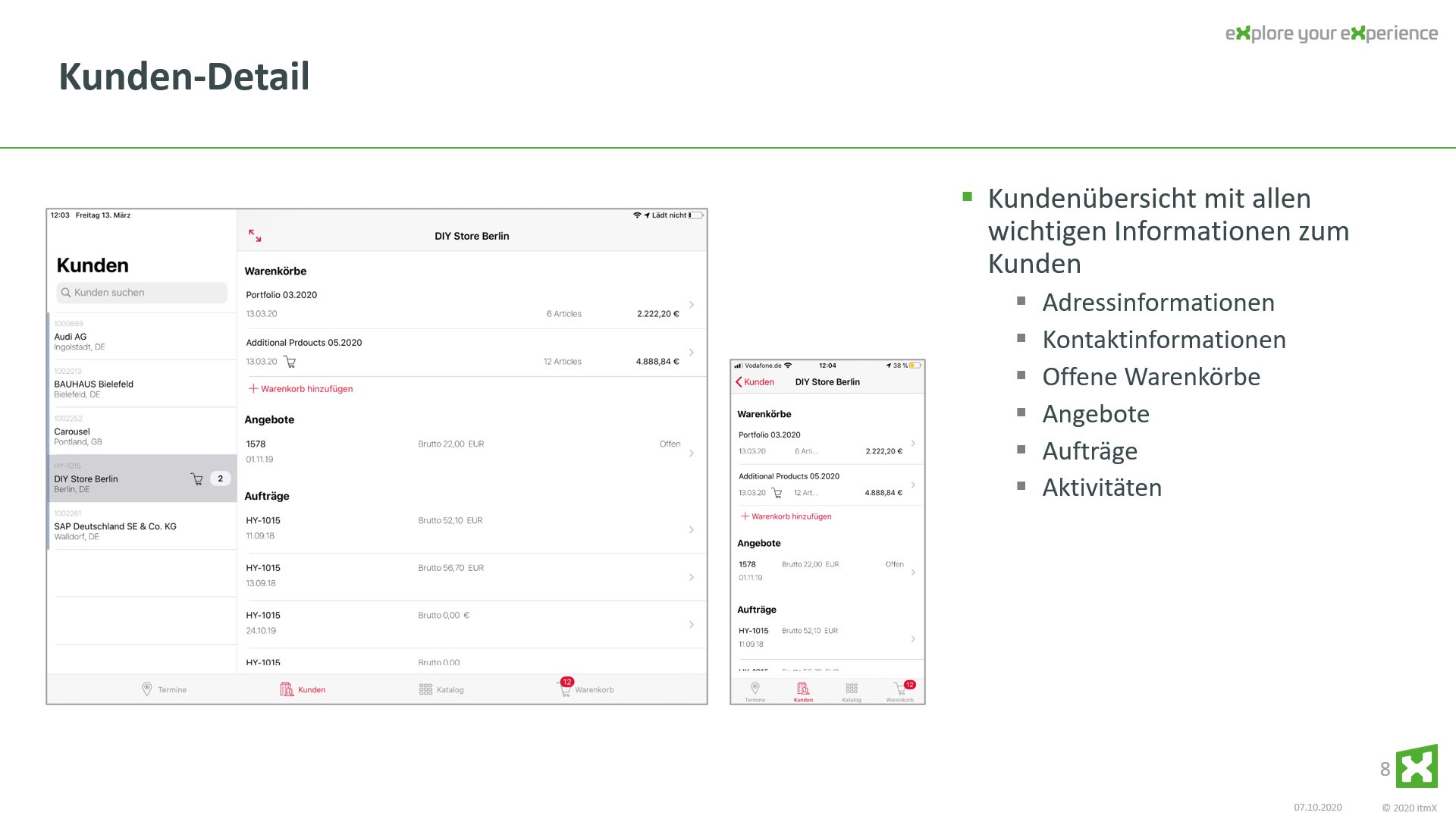 The itmX user has the complete access to all conditions and rules “with you”. This usually does not work in a classic CRM or store system in this level of detail on the tablet.