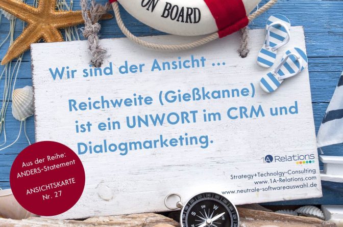 Unsere Ansichtskarte Nummer 27 aus der Reihe „Anders-Statement“ zum Thema Reichweite und CRM: