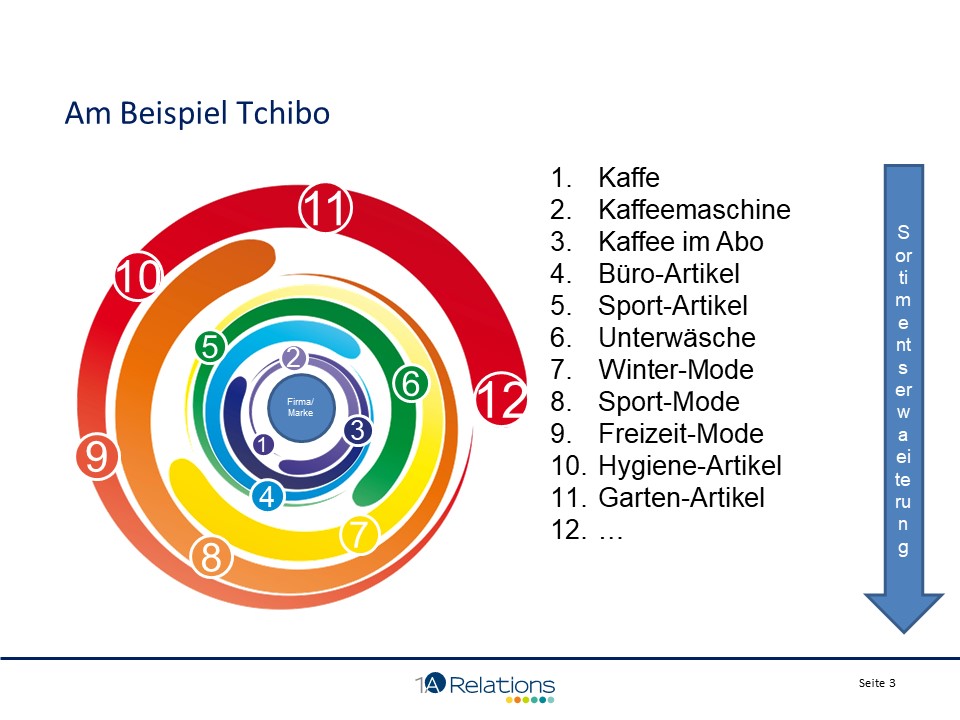 So entstand das Motto „Jede Woche eine neue Welt“, unter dem Tchibo wöchentlich seinen Kunden neue Gebrauchsartikel zu den unterschiedlichsten Themen anbietet. Insgesamt gesehen war es eine strategische Meisterleistung: Ein unter Druck geratenes Geschäftsmodell auf Basis der bestehenden Kundenbeziehungen wird renoviert und in eine erfolgreiche Zukunft geführt.