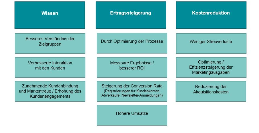 Neben diesen emotionalen Komponenten führt eine Personalisierung aus Kundensicht aber auch zu einer optimierten Customer-Experience, z. B. zu einer leichteren und schnelleren Auffindbarkeit von Webinhalten, was zusätzlich auch noch eine Zeitersparnis mit sich bringt. Alle Faktoren zusammen steigern die Kundenzufriedenheit.