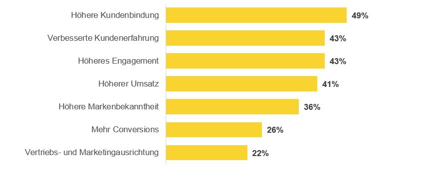 Im Vergleich zu Vorjahr (45 %) erklären außerdem inzwischen 62 % der weltweit Befragten, dass eine Marke ihre Loyalität verliert, wenn sie ein unpersonalisiertes Kundenerlebnis liefert. Bezogen auf den amerikanischen Markt fallen die Werte sogar noch höher aus, hier sind es nach einer 2021 veröffentlichten Studie von McKinsey mehr als Dreiviertel der Befragten (76 %), die angeben, dass personalisierte Inhalte ein Grund dafür waren, dass sie eine bestimmte Marke in Betracht zogen und 78 % äußerten, dass eine Personalisierung sie eher zu einem erneuten Kauf veranlasst.