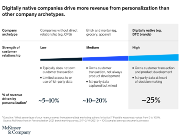 Laut der Befragung von McKinsey zeigt sich, dass eine Personalisierung in den meisten Fällen zu einer Umsatzsteigerung von 10 bis 15 Prozent führt, wobei die Spanne abhängig von Branche und dem Grad der Personalisierung zwischen 5 bis 25 Prozent Steigerung liegt. Somit kann Personalisierung einen signifikanten Anteil an der Profitabilität eines Unternehmens haben.