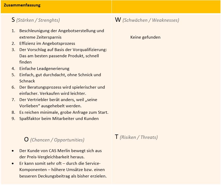 CAS Merlin ist zwar eine Standardproduktlösung, die bereits vom Kunden selbst durch Einstellungen individuell angepasst werden kann. Das ganze Produkt, das zeigt unsere Analyse, ist jedoch extrem flexibel einsetzbar und damit eine einzige Customized-Lösung!